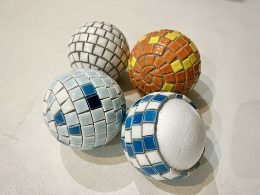 世界に一つ、自分だけのタイルボールアートを創ろう!ワークショップ開催! タイル用ニッパーでタイルを切ったり加工したりして、球体に貼り付けて作品を作る体験です。自分好みの色で手のひらサイズのアート作品を完成させましょう!作品はインテリアにぴったりで、そのままお持ち帰りできます。また、会場では作家のタイル作品も鑑賞できます。