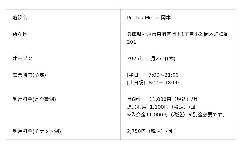 Pilates Mirror(ピラティスミラー)11月27日に神戸市東灘区にオープン!