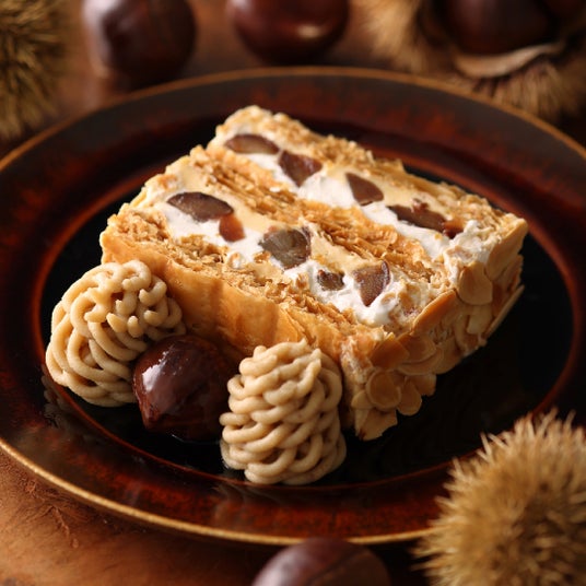 【キハチ 青山本店】栗が主役のアフタヌーンティーやキハチを代表する“ナポレオンパイ”を栗仕立てにしたデザート、黄葉シーズン限定メニューを発売