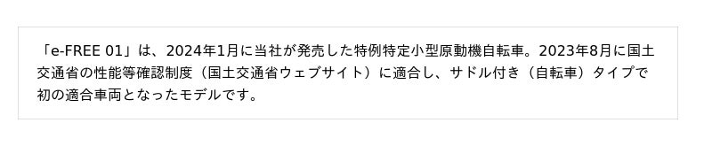 ・特例特定小型原動機付自転車「e-FREE」(2024年1月)