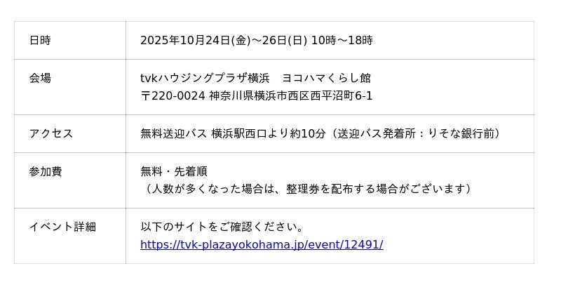 2025年10月24日(金)~26日(日) <開催場所:tvkハウジングプラザ横浜 ヨコハマくらし館>