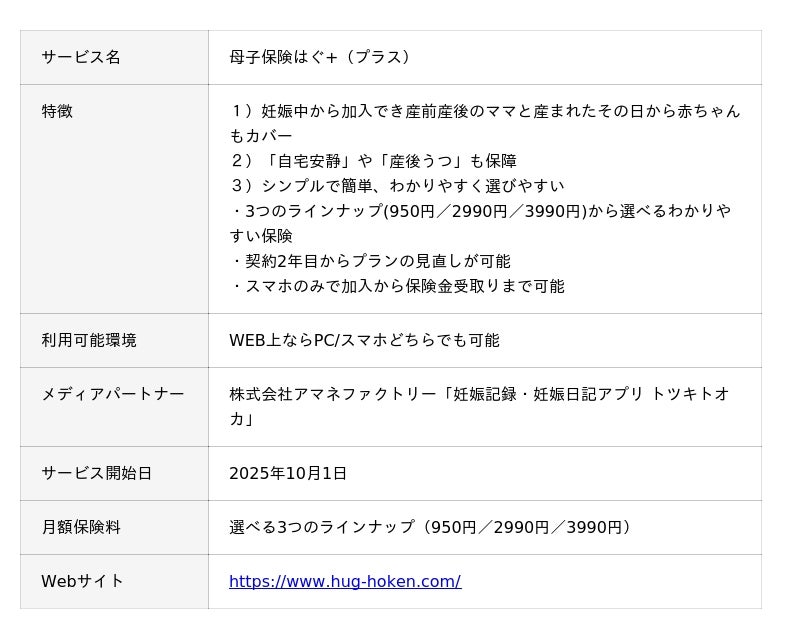 - 「母子保険はぐ+(プラス)」公式Instagram : https://www.instagram.com/hug_hoken/
