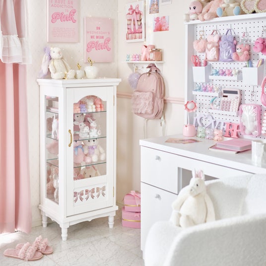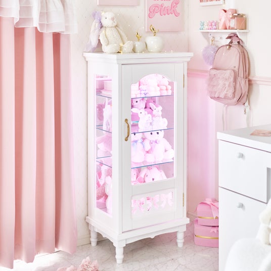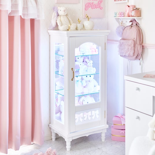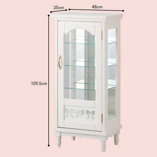 さらに、グッズが増えることで雑然としがちなコレクションスペースも、本製品を使用すれば整理しながら美しくディスプレイすることが可能です。収納としての機能性はもちろん、扉下部にあしらったリボンのデザインやクラシカルな曲線を取り入れた、インテリア性の高いデザインも魅力です。どのようなお部屋にも馴染みやすいホワイトカラーで、リビングや寝室など幅広い空間に可愛く置くことができます。