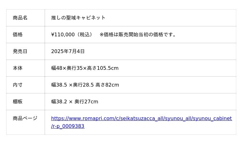 【推しの聖域キャビネット 商品ページ】