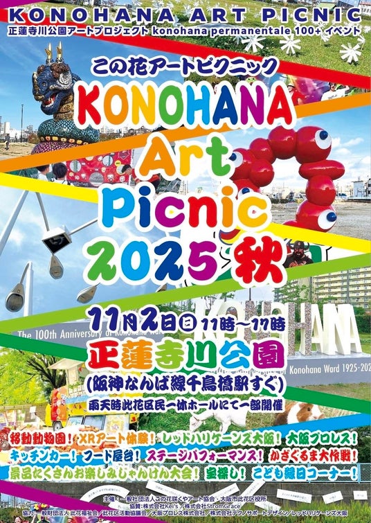一般社団法人この花咲くやアート協会は、此花区役所との共催により、令和7年11月2日(日)に正蓮寺川公園を舞台に「この花アートピクニック2025秋」を開催いたします。本イベントは、令和6年11月に初めて開催され大勢の来場者で賑わった「この花アートピクニック」、そして令和7年5月の春開催に続く第3弾となります。