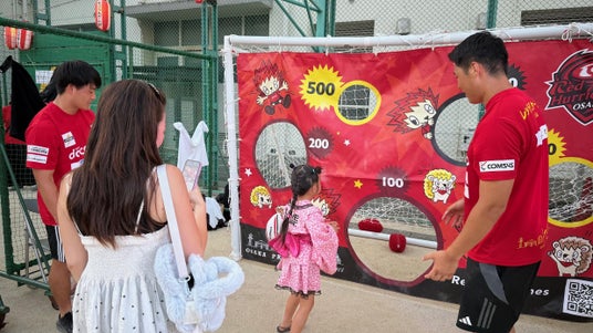 加えて、レッドハリケーンズ大阪による「パスターゲット」アトラクション、大阪プロレス・ブラックバファロー選手が登場するじゃんけん大会や手押し相撲など、魅力的なプログラムで会場を大いに盛り上げます。