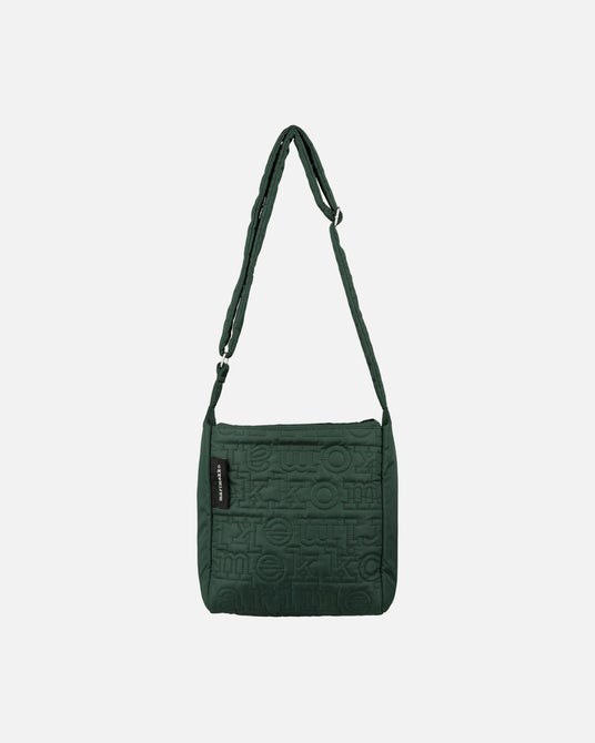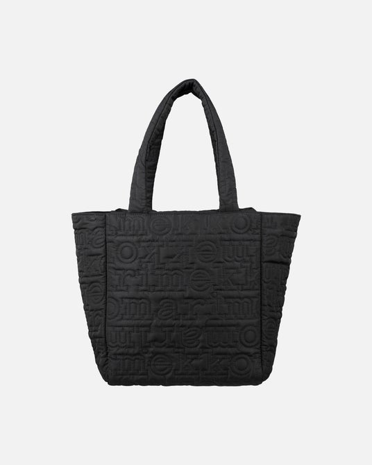 洗練されたブラックとダークグリーンの色合い、そして象徴的なマリメッコのロゴパターンが特徴です。