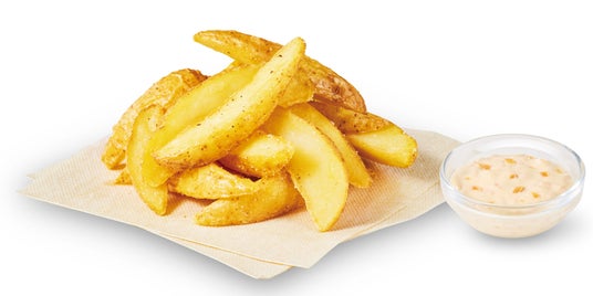 シャキシャキ食感の国産生姜のしょうゆ漬けとマヨネーズを合わせたディップソースを揚げたてアツアツ!北海道産の皮付きフライドポテトにたっぷりとディップしてお楽しみください。神の海老バーガーとの相性も抜群です。 ※北海道産フライドポテトRのみ