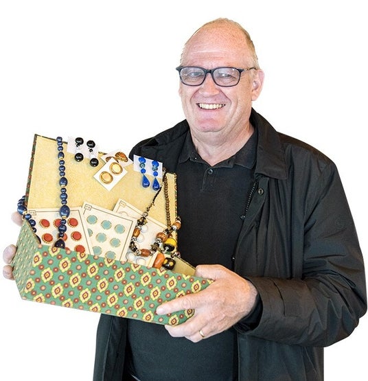 パリ近郊に在住するエリック・エベールさんは、世界有数のアンティークボタン収集家。パリ・ヴァンヴの蚤の市に、幅広い時代に作られたボタンとアクセサリーの専門店を出店している。
