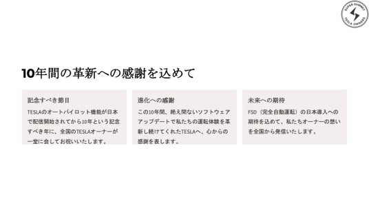 運営:TESLA SUPER SUMMIT (テスラオーナー有志プロジェクトチーム)