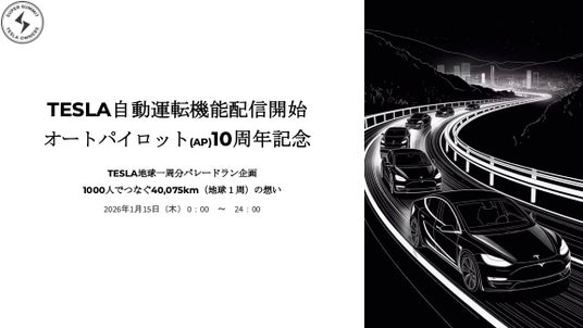 TESLAの自動運転支援機能「オートパイロット」の日本国内での配信開始から10周年を迎える2026年1月15日。