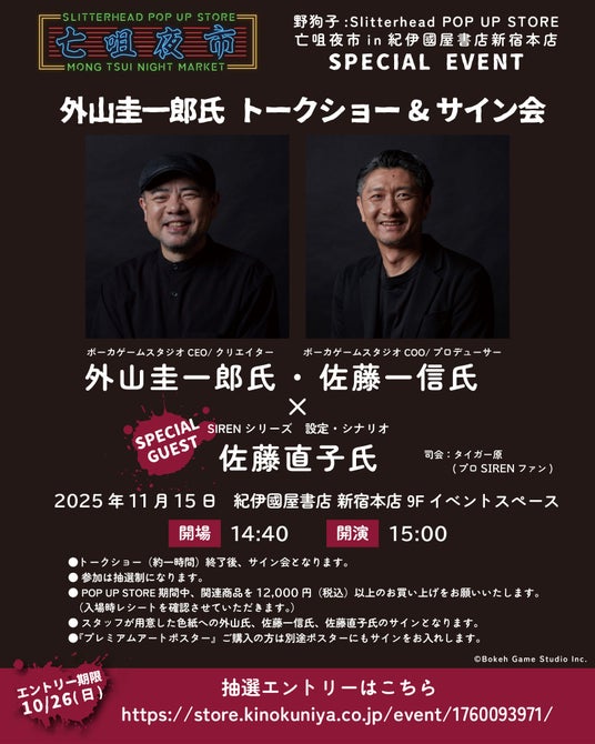 『SIREN』シリーズを手がけた外山圭一郎氏の最新ホラーゲーム『野狗子: Slitterhead』発売一周年を記念したPOP UP STOREが開催決定!外山氏トークショーとサイン会も開催決定!