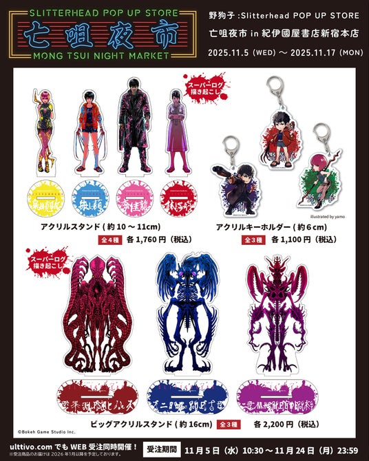 ULTTiVO[運営:株式会社MellowYellowLab(本社:東京都渋谷区 代表取締役:木村泰之)]は、『SIREN』シリーズを手がけた外山圭一郎氏の最新ホラーゲーム『野狗子: Slitterhead』の発売一周年を記念したポップアップストアを紀伊國屋書店 新宿本店 1F THE ENTRANCEにて2025年11月5日(水)より11月17日(月)までの期間限定で開催いたします。