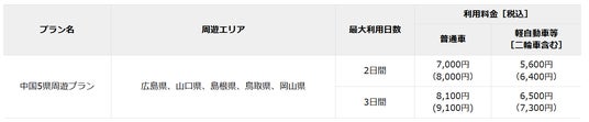 ※()内は、現在販売中のぶらり中国ドライブパスの料金
