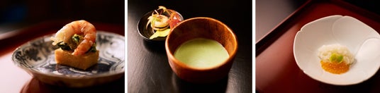 昼・夜ともに、竹村氏が組み立てる季節のおまかせコース1本。「素材」を生かすのではなく、一つひとつの「素材の持ち味」を生かすことを念頭において作られた料理を提供しています。