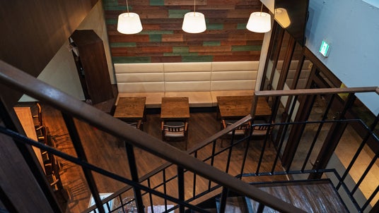 店内はメゾネットタイプの2階建てで、吹き抜けのある開放的な空間が特徴。カウンター席とテーブル席を備えており、ひとりでもグループでも過ごしやすい造りとなっています。