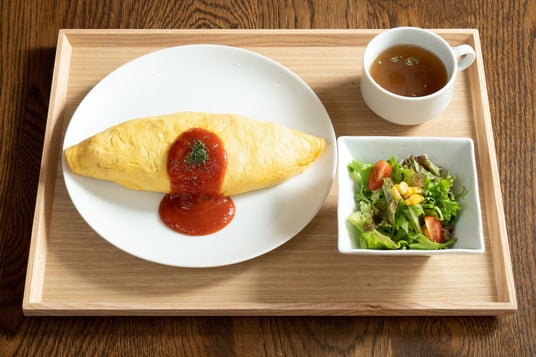 バターの香り豊かなチキンライスを、ふんわり卵で包み込んだ定番メニュー。変わらないトマトソースの酸味とコクが絶妙にマッチし、どの世代にも愛される味わいです。