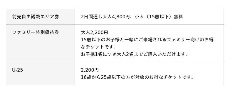 ※有料チケット1枚につき、当日場内の飲食テナントで使用できる1,000円分のミールクーポン(お食事券)が付いています。
