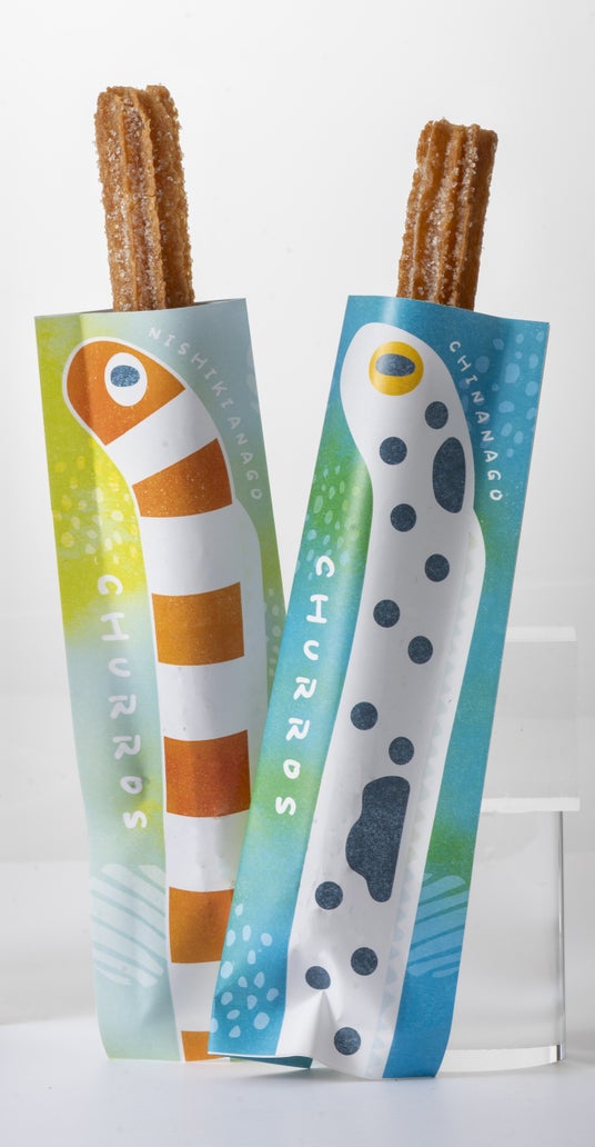 チンアナゴとニシキアナゴのオリジナルパッケージに入ったチュロスのセットです。
