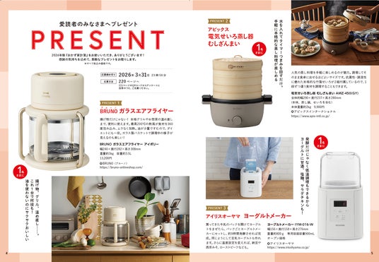 大人気「BRUNO ガラスエアフライヤー」、アピックスの「電気せいろ蒸し器 むしざんまい」ほかを抽選でプレゼント!