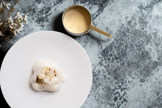 当ホテル館内5つのレストランでご提供するコラボレーションメニューは、各店の特色を活かしてご用意。1階「ダイニング ルオーレ」ではアラカルトメニューとして自家製の白いケチャップとクリーミーなホワイトソースが調和した「白いオムライス」、6階「日本料理 鯉城」ではお昼の会席の一品、6階「寿司 旬菜 酒仙」ではアラカルトの一品、33階「レストラン シャンボール」ではランチコースの一品としてご提供いたします。また、33階「スカイダイニング リーガトップ」では、展覧会にてご鑑賞いただけるルノワール《胸に花を飾る少女》からインスパイアされたカクテルが登場。少女の可憐さや柔らかな印象を表現しました。