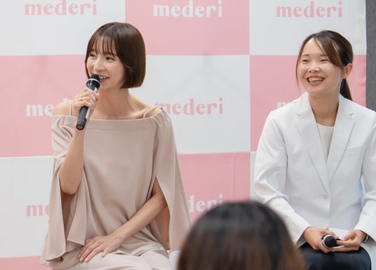 (写真:左からmederi株式会社 代表取締役 坂梨 亜里咲、株式会社パン・パシフィック・インターナショナルホールディングス 取締役 兼 執行役員 二宮 仁美 氏、俳優・タレント 篠田麻里子さん、産婦人科医 郡詩織先生)