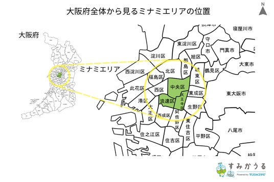 画像2:大阪府全体から見るミナミエリアの位置(すみかうる)