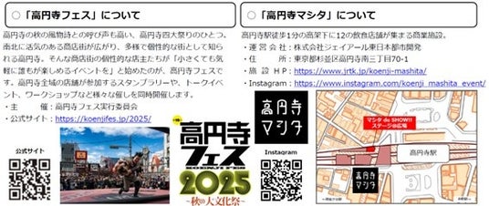 JR中央線高円寺駅高架下の商業施設「高円寺マシタ」は、昨年に引き続き、2025年10月25日(土)・26日(日)に開催される高円寺四大祭りのひとつ「第19回高円寺フェス2025」に参加します。