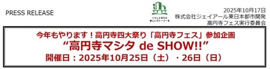 2025年10月25日(土)・26日(日)の2日間、高円寺マシタde SHOWを開催!