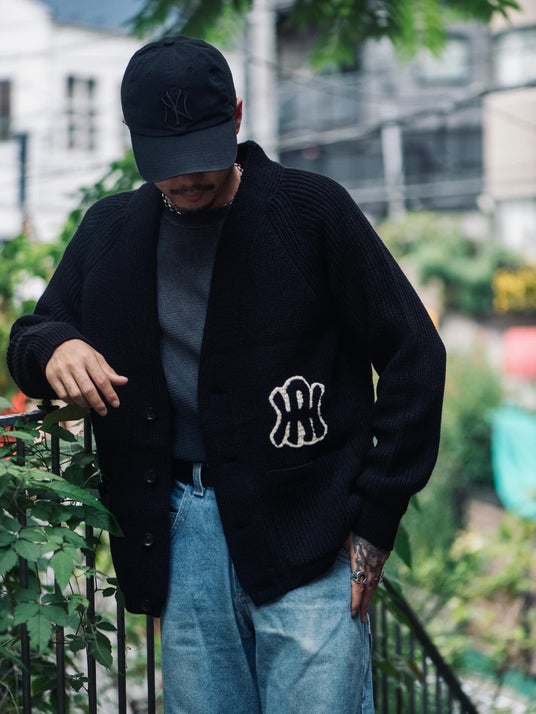 いつの時代にも着用できるモノづくりを展開する〈HOLLYWOOD RANCH MARKET〉から、ブランドのアイコニックな「HR」ワッペンをレタード調にあしらった新作ニットカーディガンが登場。