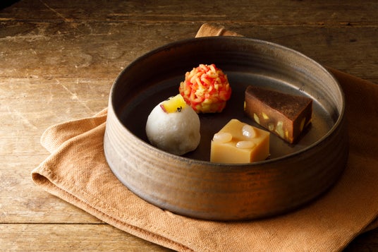 石川県の農家×地元和菓子職人、農菓プロジェクトメンバーのコラボレーション創作菓子。地元のお茶と一緒に楽しめる。
