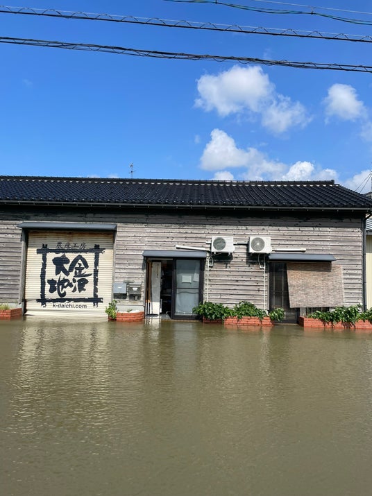 (株)金沢大地(金沢市八田町東9)は、有機栽培で国内規模最大の広大な農地を持ち、加工品も自社農場の原材料までトレースできる「生産者の顔が見える」食づくりをしています。令和7年8月6日からの線状降水帯の影響により、金沢大地の社屋と倉庫が浸水。幸いにも人的被害はありませんでしたが、限りある貴重な原材料や商品の数々に水がつき、大量の廃棄処分となりました。