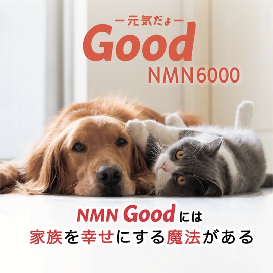 “家族を幸せにする魔法”が、NMN Goodにはあります。「1日でも1秒でも長く、健康で愛に溢れた今の暮らしを続けたい」そんな飼い主さまの思いから誕生した、NMNわん・にゃんサプリ「Good」。日々お世話をしている飼い主さまの「気持ち」に寄り添い、“与えやすく・安心・安全・高品質・高配合”にこだわって開発されました。