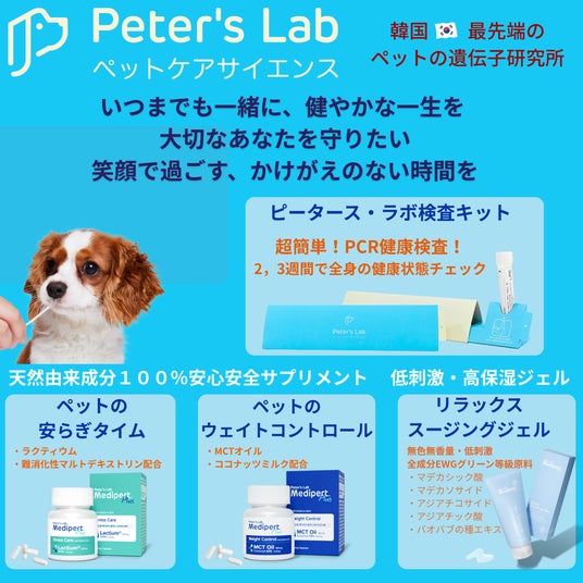 ピータース・ラボは、世界中のわんちゃんと大切な家族がより健やかに、より幸せな毎日を過ごせるように…永年の研究を重ね真心を込めて検査キットやサプリメントなどを作りました。