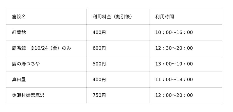 ◆開催期間中限定 休暇村を含む鹿沢温泉5施設で入浴割引