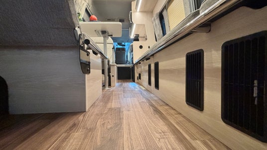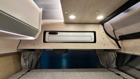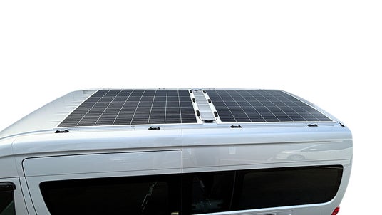 クーラーパッケージプラス2を選択すると、リチウムイオンバッテリー500Ah、インバーター3000W、12Vクーラー専用外部電源口、ポータブルバッテリー電源口、外部電源装置(50Aチャージャー)、100Vコンセント、そして、断熱加工がセットで搭載されます。また、オプションで薄型ソーラーパネル250Wを最大2枚追加することも可能です。