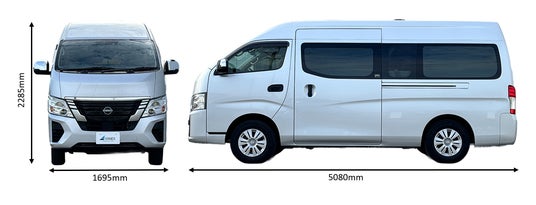 サイズ:全長5,080mm×全幅1,695mm×全高2,285mm(マックスファン装着時は2,400mm)、8ナンバー、日産キャラバンスーパーロングバンベース、燃料タンク65L