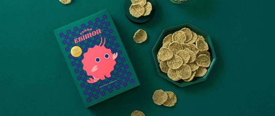 モンスターのキャラクターが目を引くパッケージの中身は、天然海老に国産青のりの風味がふわりと香る、カリッとサクッと揚げて軽やかなお煎餅。ご購入の方にもれなく、オリジナルステッカーをプレゼントいたします。