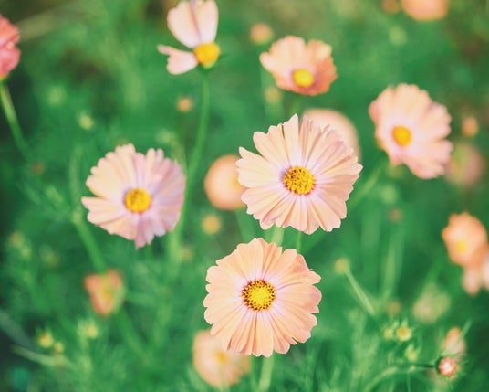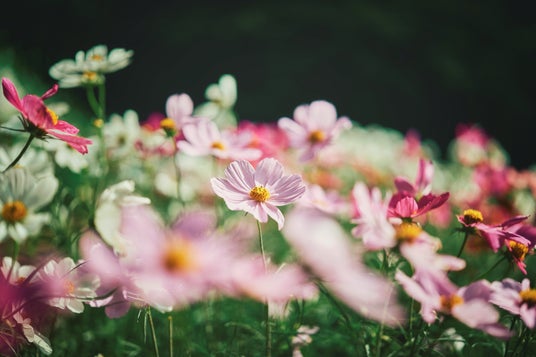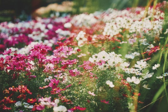 コスモス畑を彩るセンニチコウとガウラ