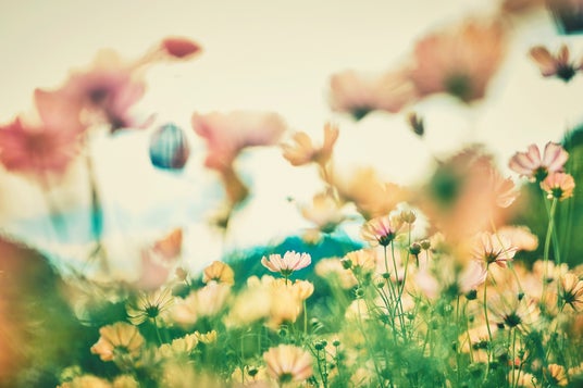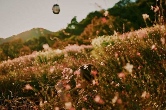 昼は一面を淡くやさしく彩る花々が夕刻には夕焼け色の花畑へと移り変わります