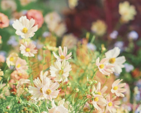 「風の丘フラワー園」、「四季の庭 -よろこびの庭」の2つの趣が異なるガーデンで、違った品種・色合いのコスモスをお楽しみいただけます