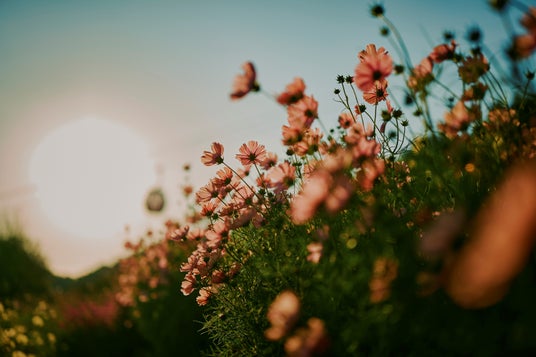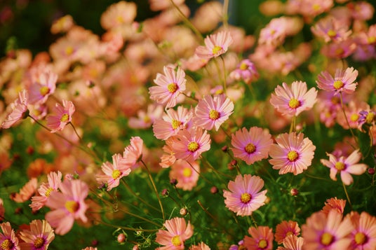 夕陽を浴びたコスモス