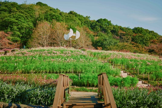 主役のコスモスを更に引き立たせる丸く可憐なセンニチコウ、秋空に舞う蝶の様な小花が美しいガウラとの秋の雰囲気たっぷりの情景もお楽しみいただけます。また、取り囲む木々の色づきも日ごとに増しています。「布引の紅葉」との圧巻の景色が見られるのも間もなくです。神戸の街並みを眺めながら「秋」を存分にお楽しみください