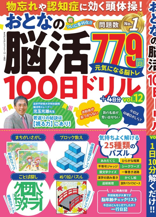 【問題数No.1】毎日楽しくたっぷり脳トレ厳選779問!『物忘れや認知症に効く頭体操! おとなの脳活100日ドリル』シリーズ。大好評につき季刊化決定! 第12弾は10/20日(月)発売!