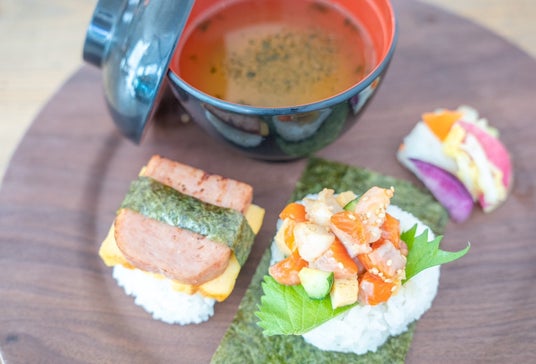 立てないおむすびプレート ふっくら炊き上げたご飯を手で包まずに仕上げる「立てないおむすび」。素材の味をそのまま楽しめる優しい一皿。
