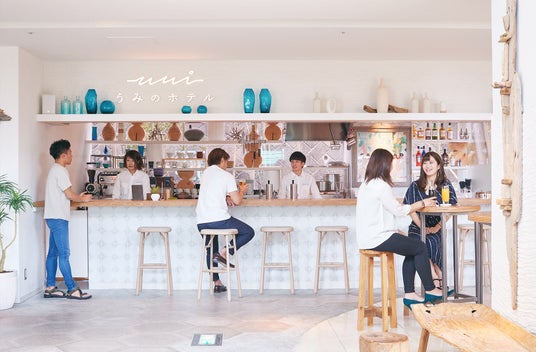 “うみにあいにいく”をコンセプトにしたライフスタイル型リゾートホテル。美しい水平線を一望できる客室や、グループで楽しめる「Bunk room」など、多彩な滞在スタイルをご用意しています。最上階の人工温泉「Horizon Onsen」では、湯に浸かりながら江の島や富士山を望む贅沢な時間を。1階「SANDBAR」では地元食材を使った料理やカクテルを楽しめ、宿泊以外の方も利用可能。都心から約1時間で、海と夕日が織りなす特別なひとときをお届けします。