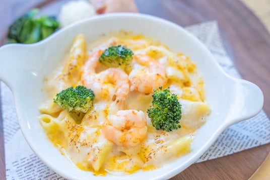ホワイトソースの海老グラタン クリーミーなホワイトソースにぷりぷりのエビを加えた、朝にぴったりの一皿。