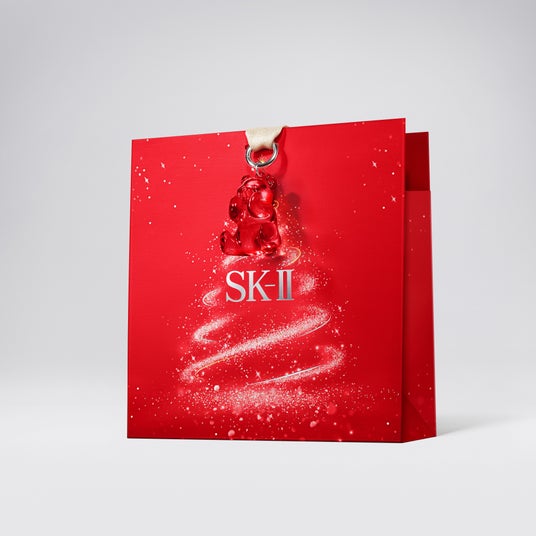 ホリデーシーズンは1年間頑張った自分へご褒美を、また心を込めてギフトを贈るのにぴったりのタイミング。今年は、ブランドを象徴する「フェイシャル トリートメント エッセンス(通称:ピテラ(TM)エッセンス)」が主役のコフレ、そして9月に発売したばかりの新製品「スキンパワー リニュー クリーム」が主役のコフレをそれぞれサイズ違いで展開します。また、百貨店限定で、SK-II最高峰*⁴ラインの「LXP 金継ぎ クリーム」が主役の贅沢なコフレ*⁵も展開。それぞれのコフレには、ホリデーシーズンのために特別にデザインされたペーパーバッグ*⁶、“ぴてくま”のチャームまたはジュエリートレイ、そしてスペシャルなミニサイズのスキンケアセットが付属します。