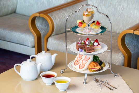2種類以上の静岡茶と、スイーツを組み合わせたアフタヌーンティー。日本のお茶の4割近くを生産している静岡県の中でも、中部エリアにあたる「するが地域」は多くの茶畑が点在し、気候風土に適したお茶作りが行われています。