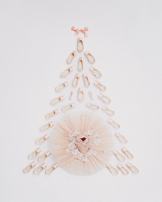 ・ レペットを象徴するトゥシューズのオーナメントやピンクのサテンリボン、チュールなどでデコレーションされたクリスマスツリー